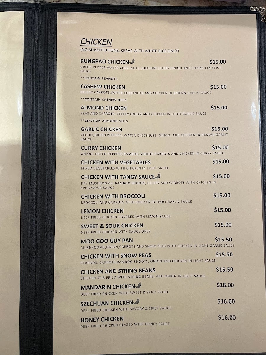 This menu is suitable for casual dining and quick orders, offering a range of meal options from light starters and soups to full entrees featuring different proteins and flavors commonly found in Chinese cuisine. Gluten-free options are also available to accommodate dietary preferences.